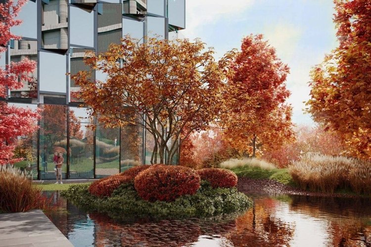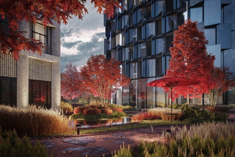 Придомовая территория продумана в лучших европейских традициях: ландшафтный дизайн в стиле натургарден с рокарием и яркими газонами, уютная площадь с фонтаном и летними верандами, небольшой парк-променад, детские и спортивные площадки.