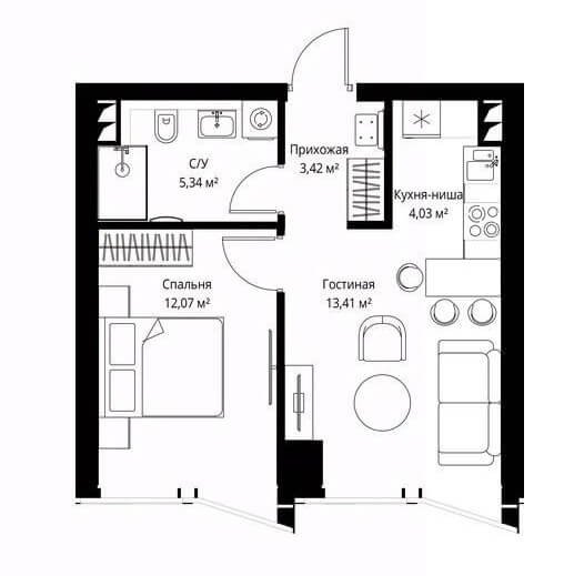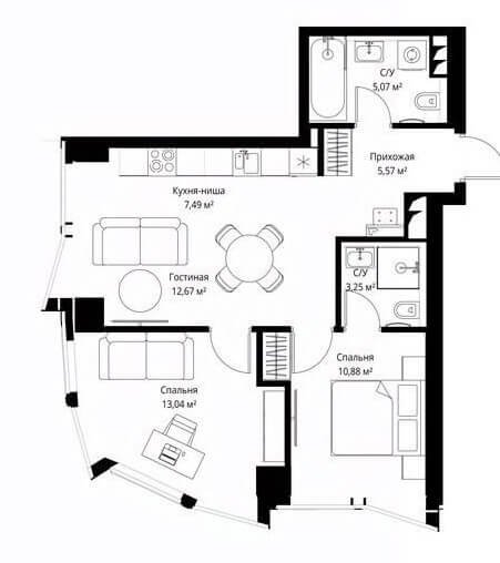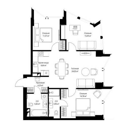 В проекте предложены квартиры европейского формата. Из окон которых открывается панорамный вид на достопримечательности Москвы, парк Фили, Москва-Сити и Поклонную гору. Сдаются квартиры с подчистовой отделкой и чистовой на выбор, высота потолков — 3.1 метра, а на 57 этаже расположились пентхаусы с высотой потолков 5.2 метра.